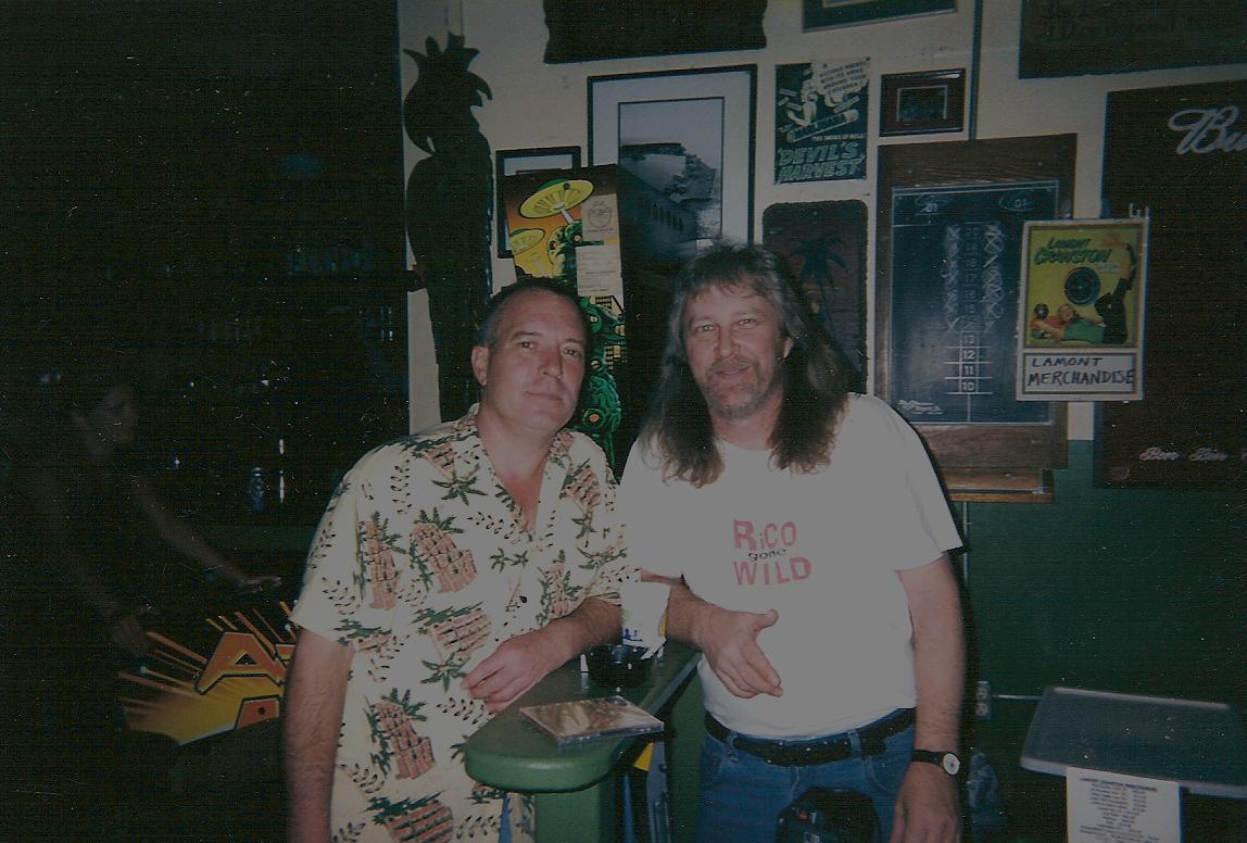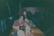 Sorry for these last few photos. My new computer has a temporary fix for the scanner software because of this stupid new Windows Vista. It caused quite a few compatibility problems. I don't think they thought of everything. I'll try to re-scan these soon. Anyway, I didn't take too many shots of the band actually playing, but here's one. We also met Gabe Butterfield down there. He is Paul Butterfield's son. He lives there. Scott, Gabe and Sally. Greg and I at the sales table. Our Minnesota buddy Scott Clifford stopped to chat with me for awhile.