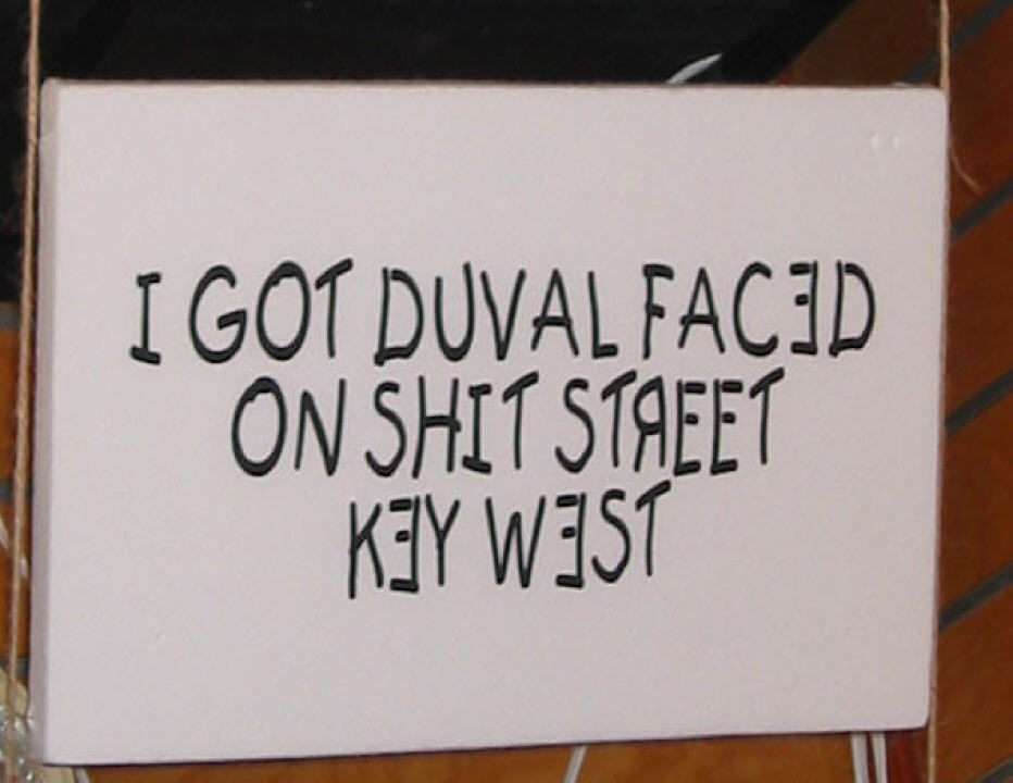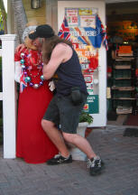 Michael had already met some of the street musicians hanging out in Key West. He hit it off with a gal named Davina and they hung out quite a bit. She played guitar and was a great singer. After the Parrot, we had to do a little exploring. A restaurant called Duffy's - Clem will get a kick out of that. Ah yes, Sloppy Joe's. Some of the T-hirt design were hilarious. Then, down to the pier for the famous Key West sunset. Even the mimes showed up.